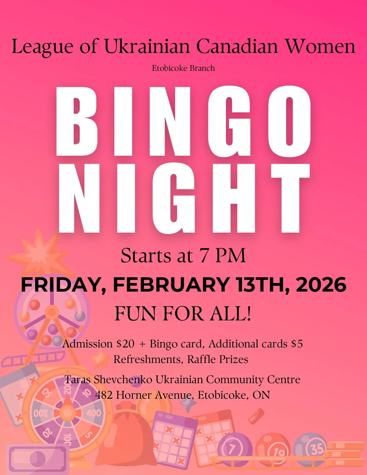 EVENT: Bingo Night Community NewsCommunity Event Feb 5 Written By Kira Kralytsia Feb. 13 / 2026 - 7pm | 482 Horner Ave., Etobicoke View fullsize Kira Kralytsia