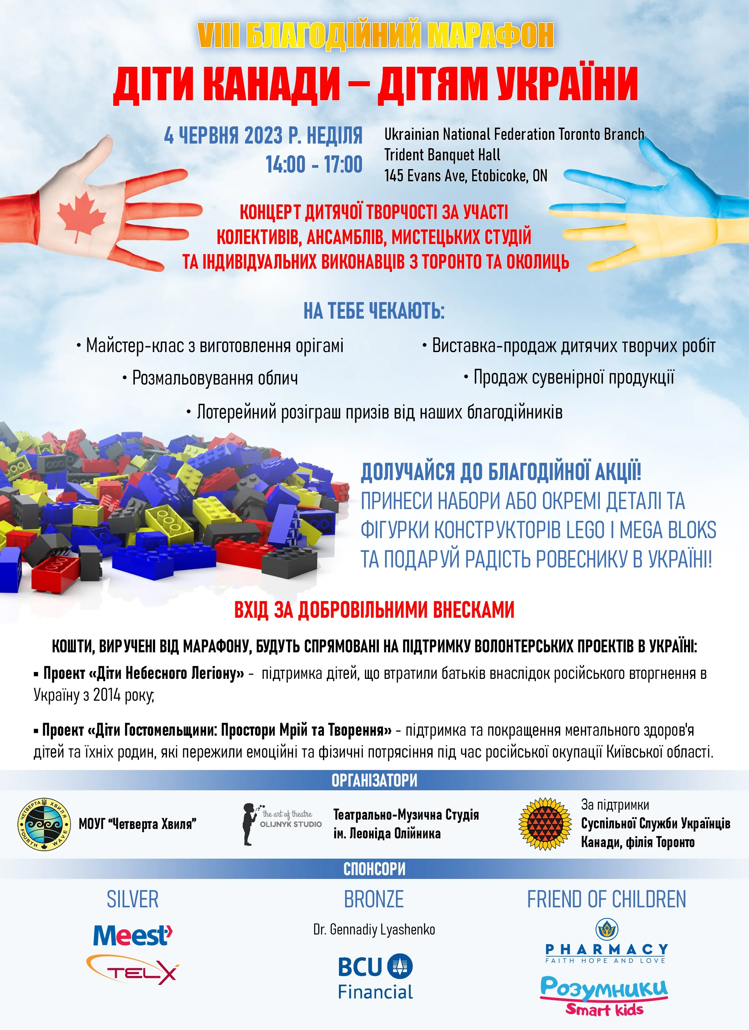 FUNDRAISER: Діти Канади - Дітям України Jun 1 Written By Christina Kowalenko Sun. Jun. 4/2023 — 2pm | Trident Banquet Hall, UNO Christina Kowalenko