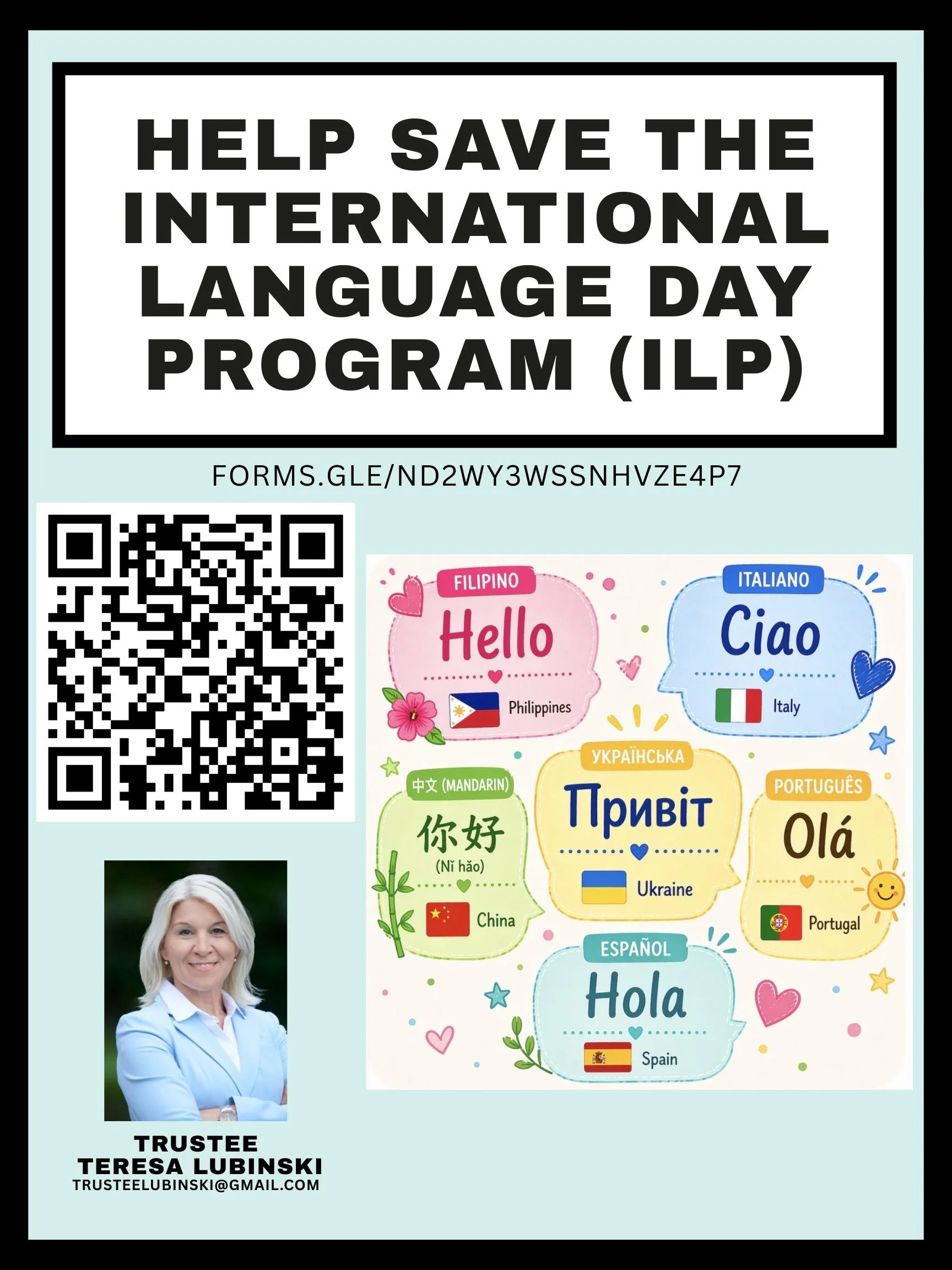 Parents, guardians, and community members who support the continuation of the International Language Day Program are invited to complete the form.