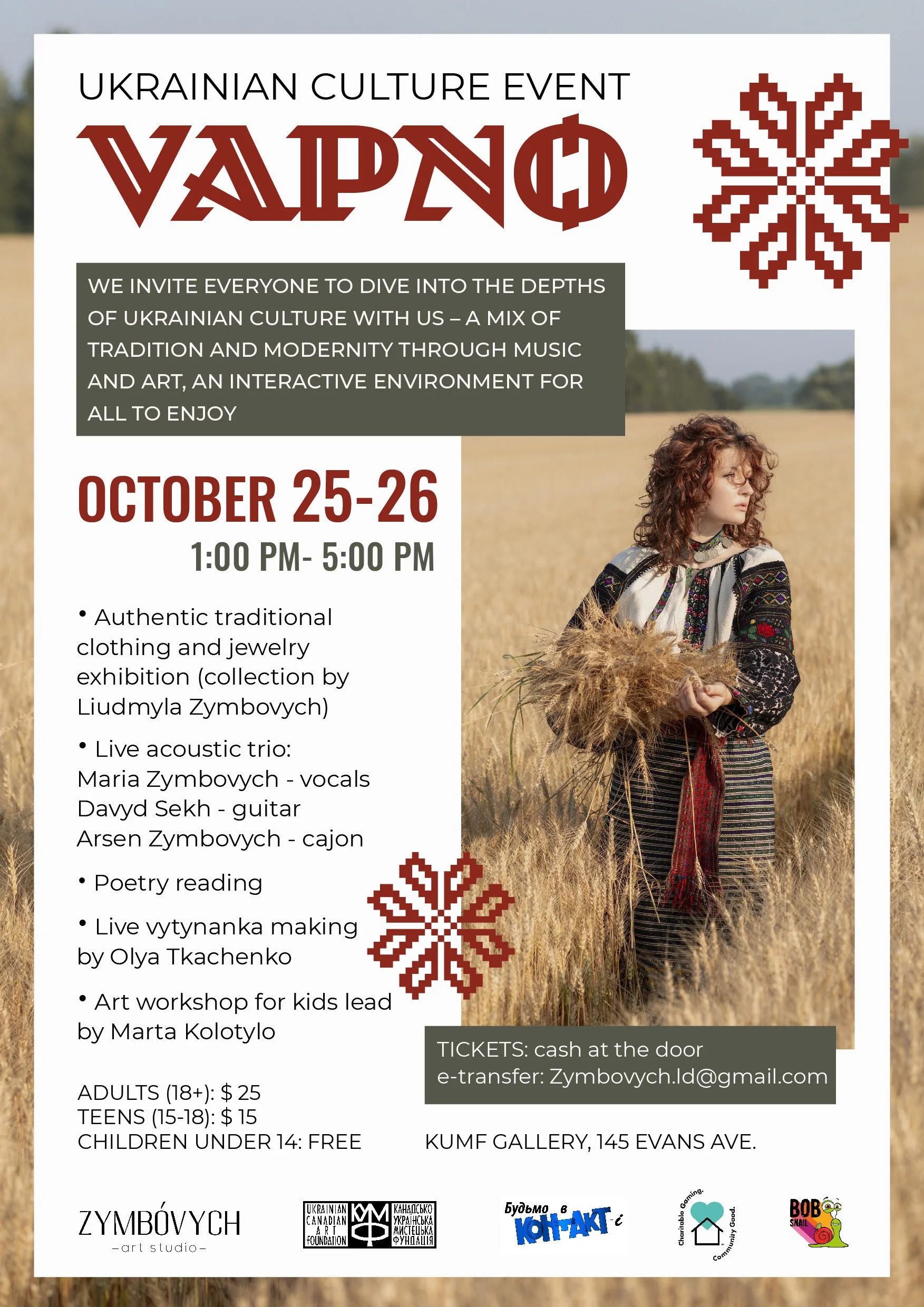 Admission by cash at the door or e-transfer to Zymbovych.ld@gmail.com