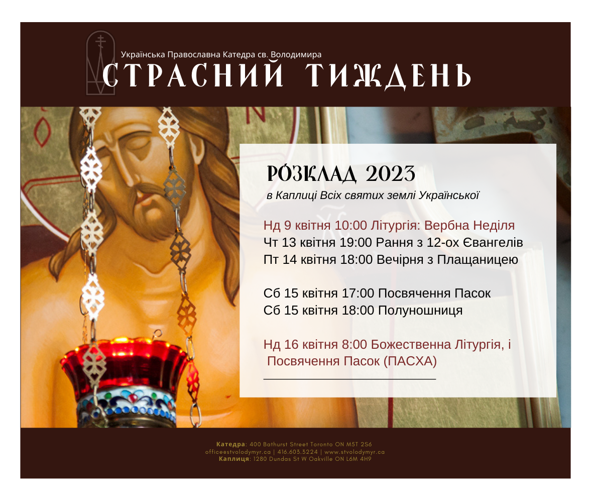 Освячення кошиків відбудеться після Пасхальної Літургії на паркувальній площадці біля катедри. По прибуттю до катедри, будь ласка, залиште ваш кошик у церковному залі, який розташований на нижньому поверсі катедри, і приєднайтесь до Пасхальної Літургії.