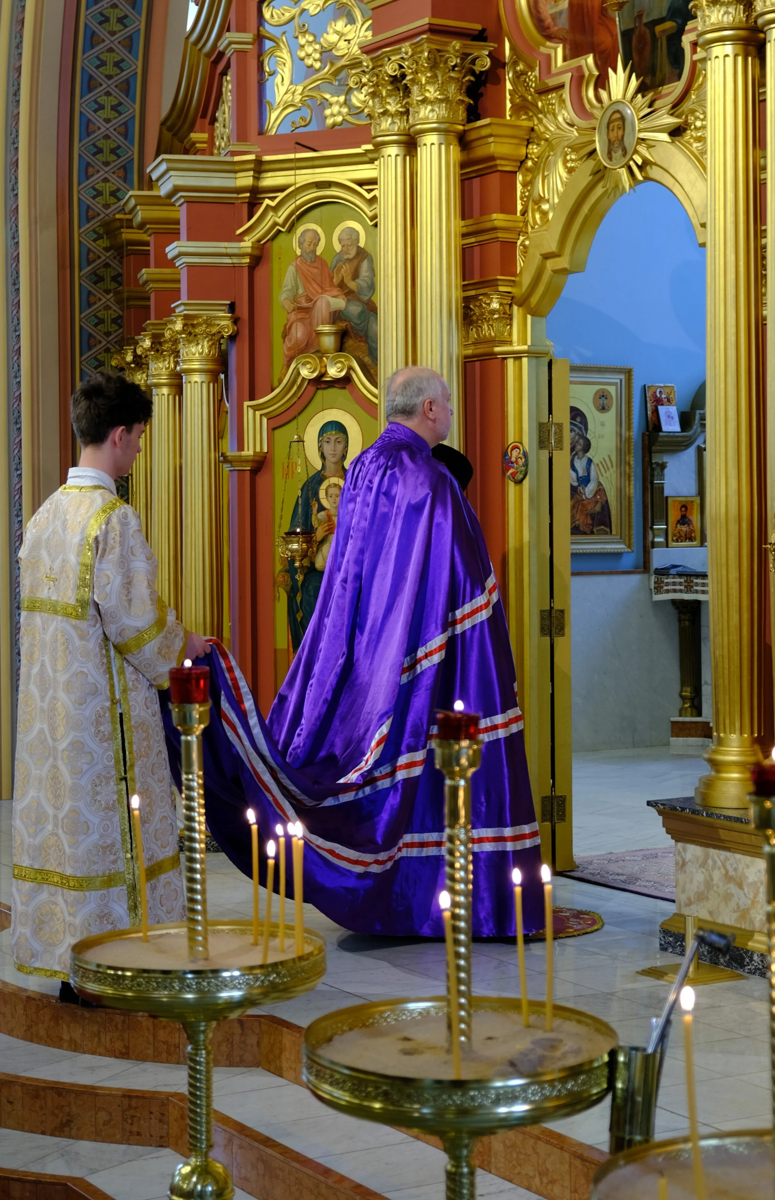 Перед початком святкової архієрейської служби Єпископа радісно привітали діти та парафіяни Собору, а також духовенство у повному складі. Окрасою Богослужіння стала, сповнена духовної глибини проповідь Владики.