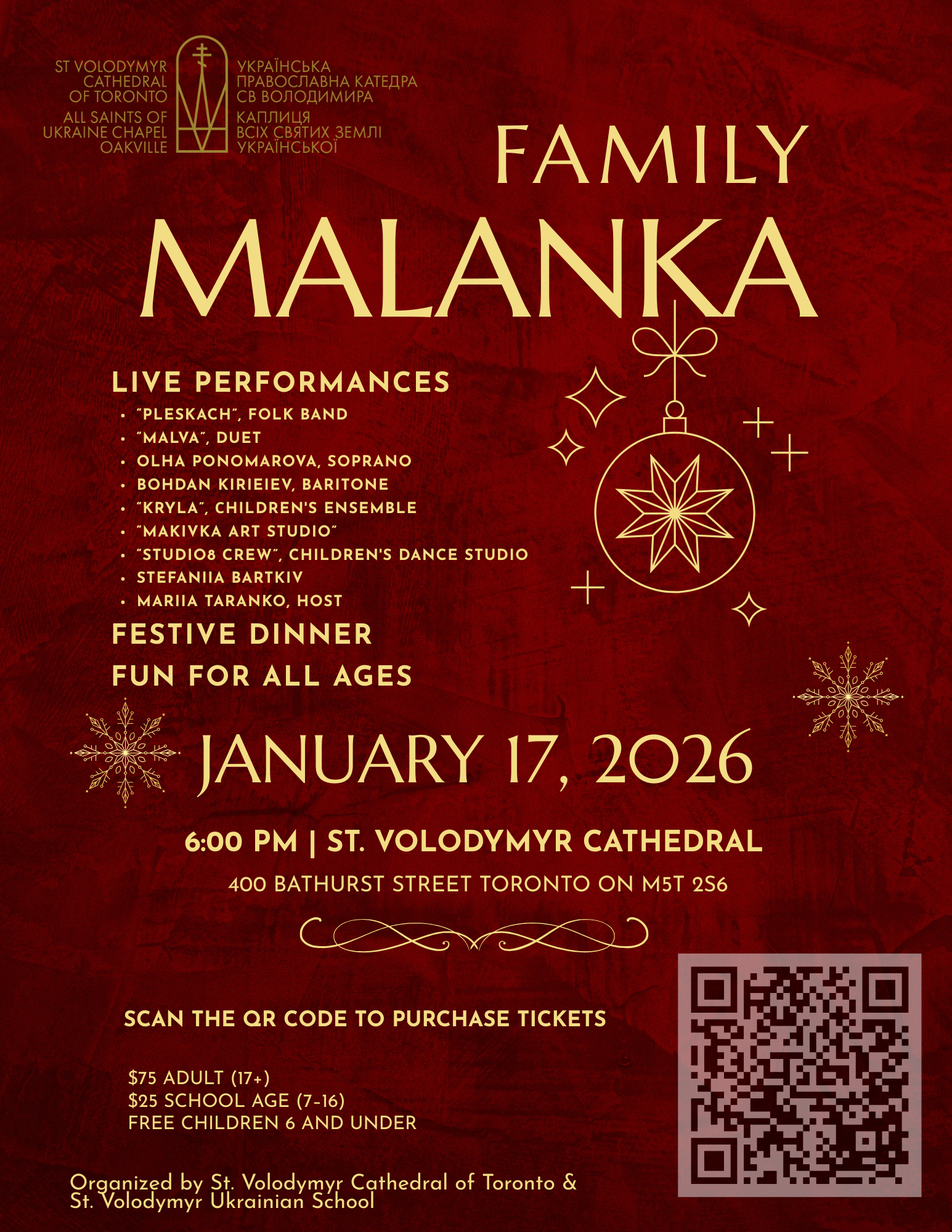 We are excited to announce St Volodymyr Cathedral, together with the St Volodymyr Ukrainian School, will be bringing this special family tradition back to a new generation as we host our Family Malanka on January 17th, 2026, at St. Volodymyr Cathedral.