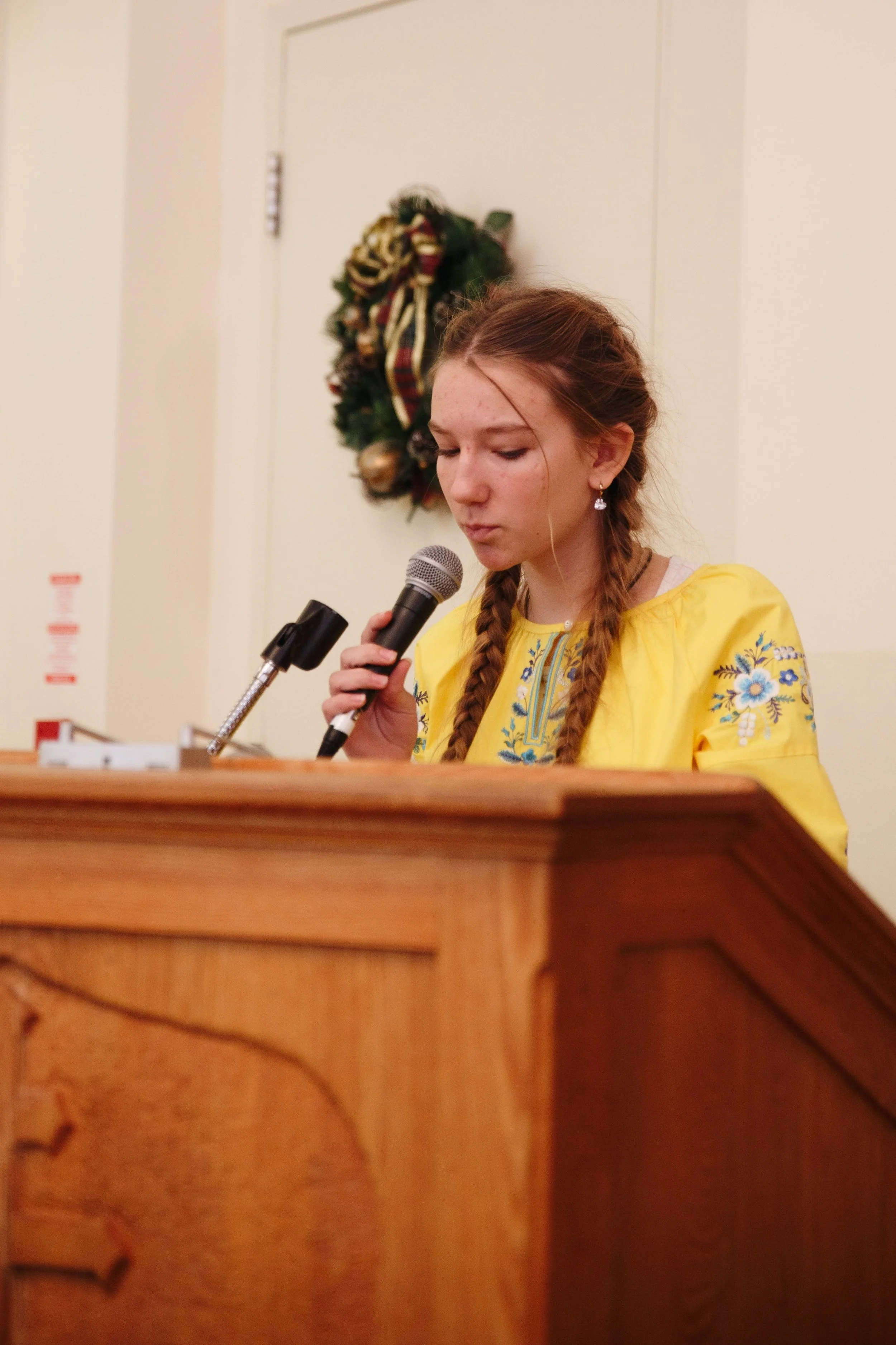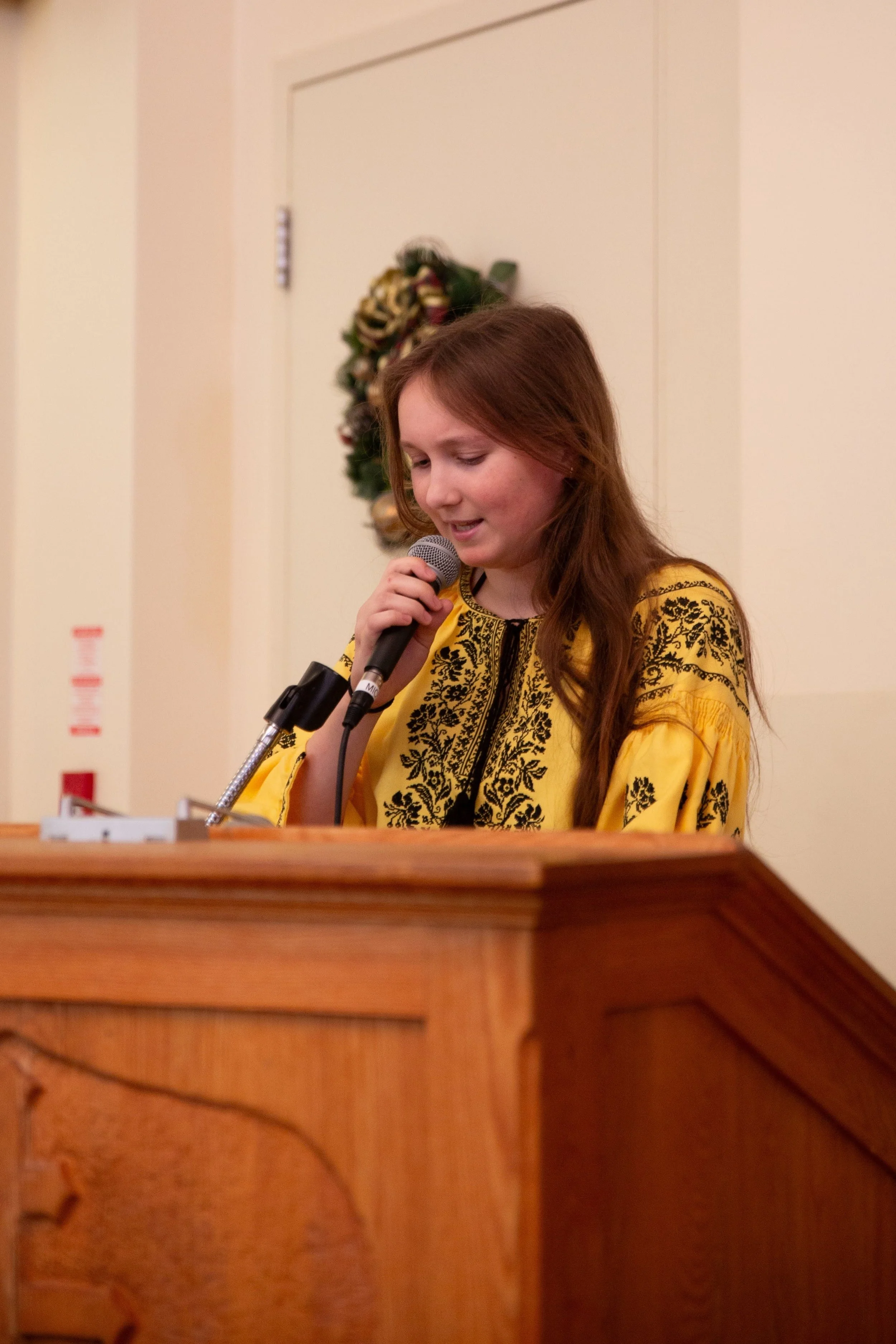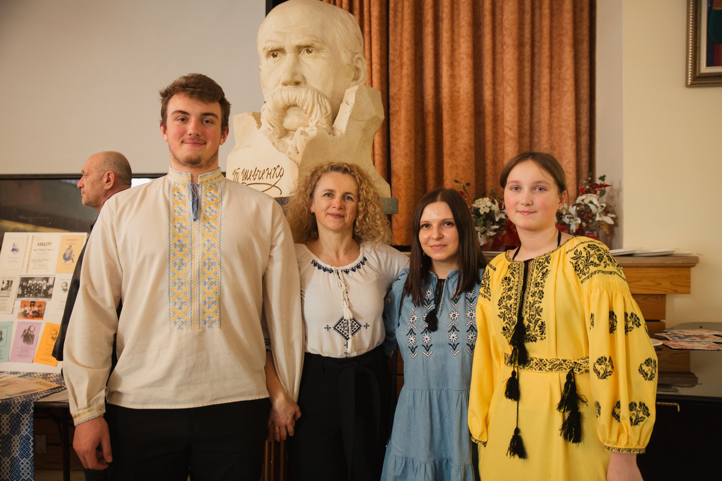 The program featured musical and poetic performances by accomplished artists Tetiana Cherneta and Oksana Yefimenko, as well as young performers Denys Trokhymenko, Nestor Suslov, Zlata Belchuk, Maryna and Emily (Mylusia) Umar-Kitab Skliarenko, Angelina Pasternak, and Solomiia Pasternak. A special addition to the program was a presentation by Walentyna Rodak, who shared an informative reflection on monuments dedicated to Taras Shevchenko around the world.