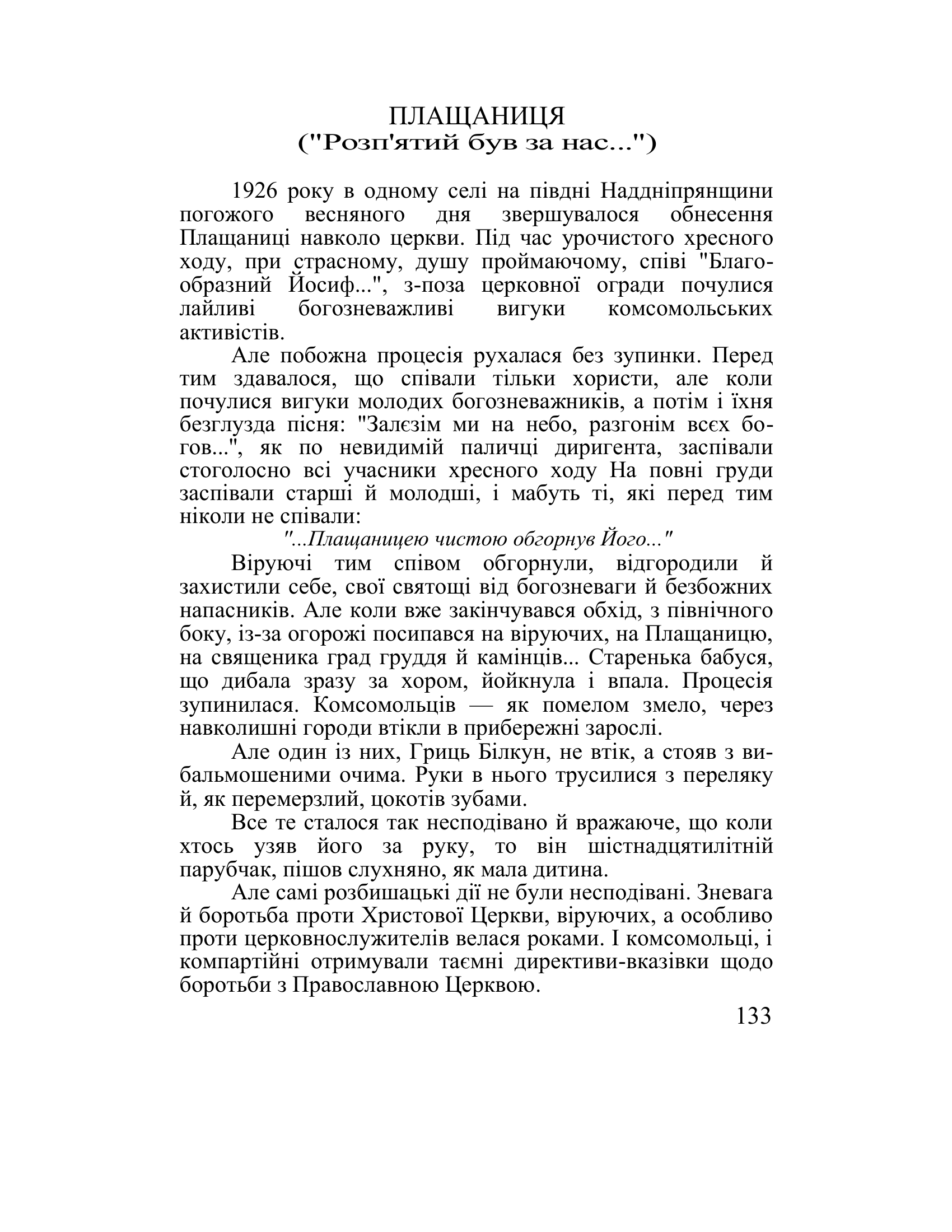 ПЛАЩАНИЦЯ “Розп’ятий був за нас”