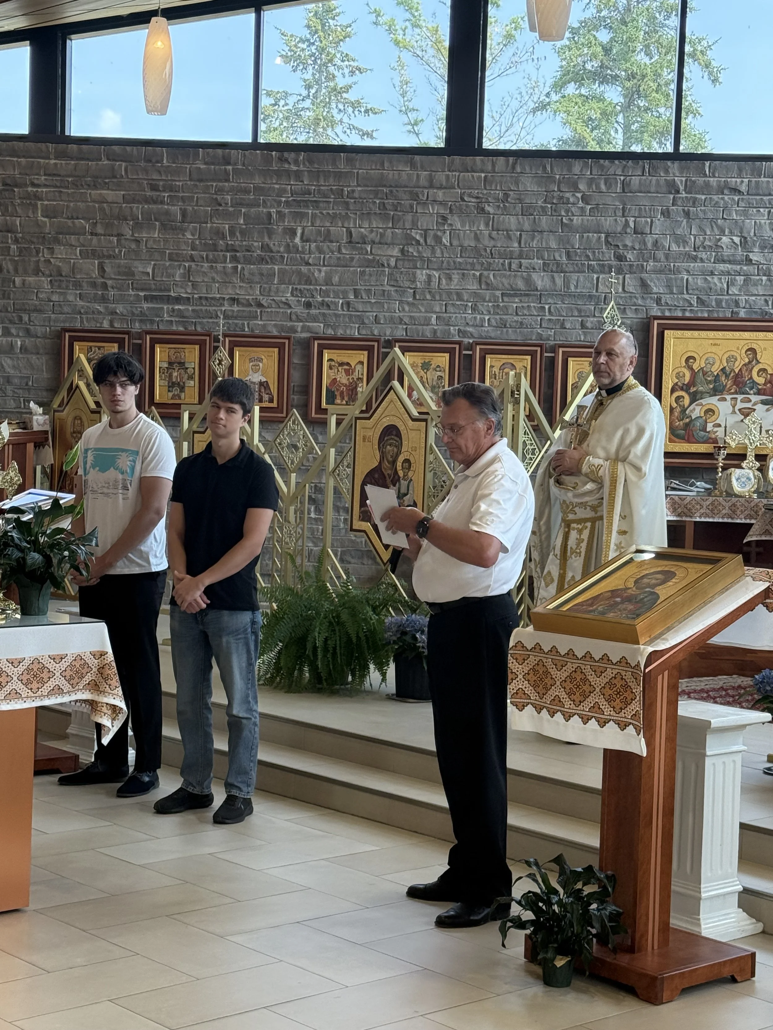 On August 10th, the Chapel was proud to present scholarships to two outstanding students: Michael Yastreb, who will begin the Aviation Technician – Aircraft Maintenance program at Mohawk College, and Matvii Zakharchuk, entering his second year of Commerce studies at the University of Toronto in Mississauga.