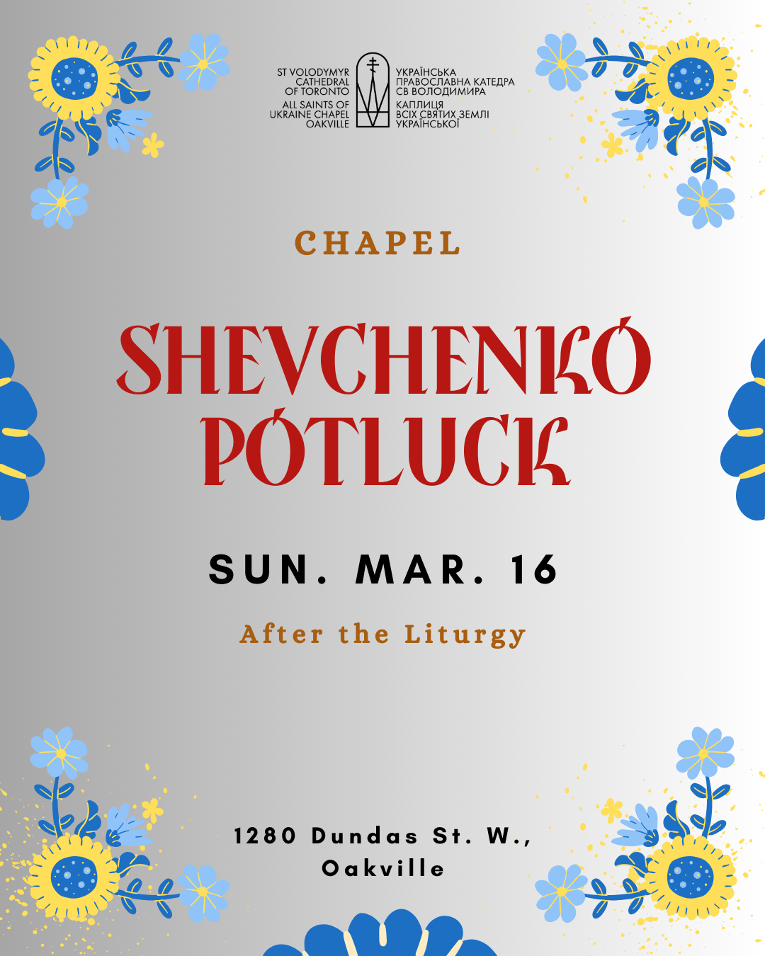 Join us on Sunday, March 16, after the Liturgy at the Chapel for a special potluck dedicated to Taras Shevchenko.