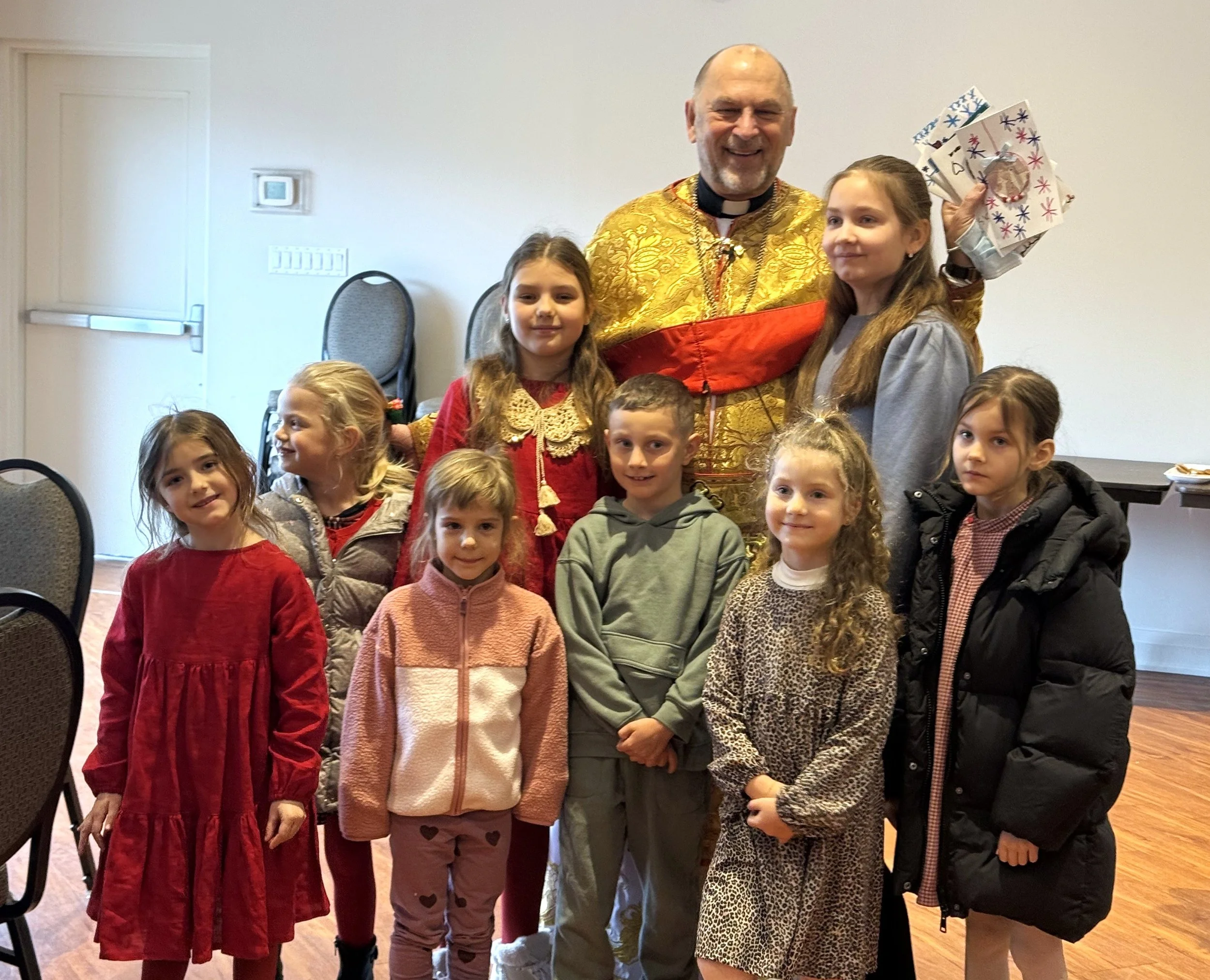 During this time, the children of the parish took part in the final Sunday School class of the year, led by dobrodyika Natalia. Afterwards, an art workshop facilitated by Tania Ternovska helped create a festive spirit as the children made Christmas cards. With great excitement, the children presented all of the cards to Otets, who then shared them with our cherished parishioners. Through this gesture, the children expressed their gratitude for the warm, friendly relationships they enjoy with the long-standing members of our church community.
