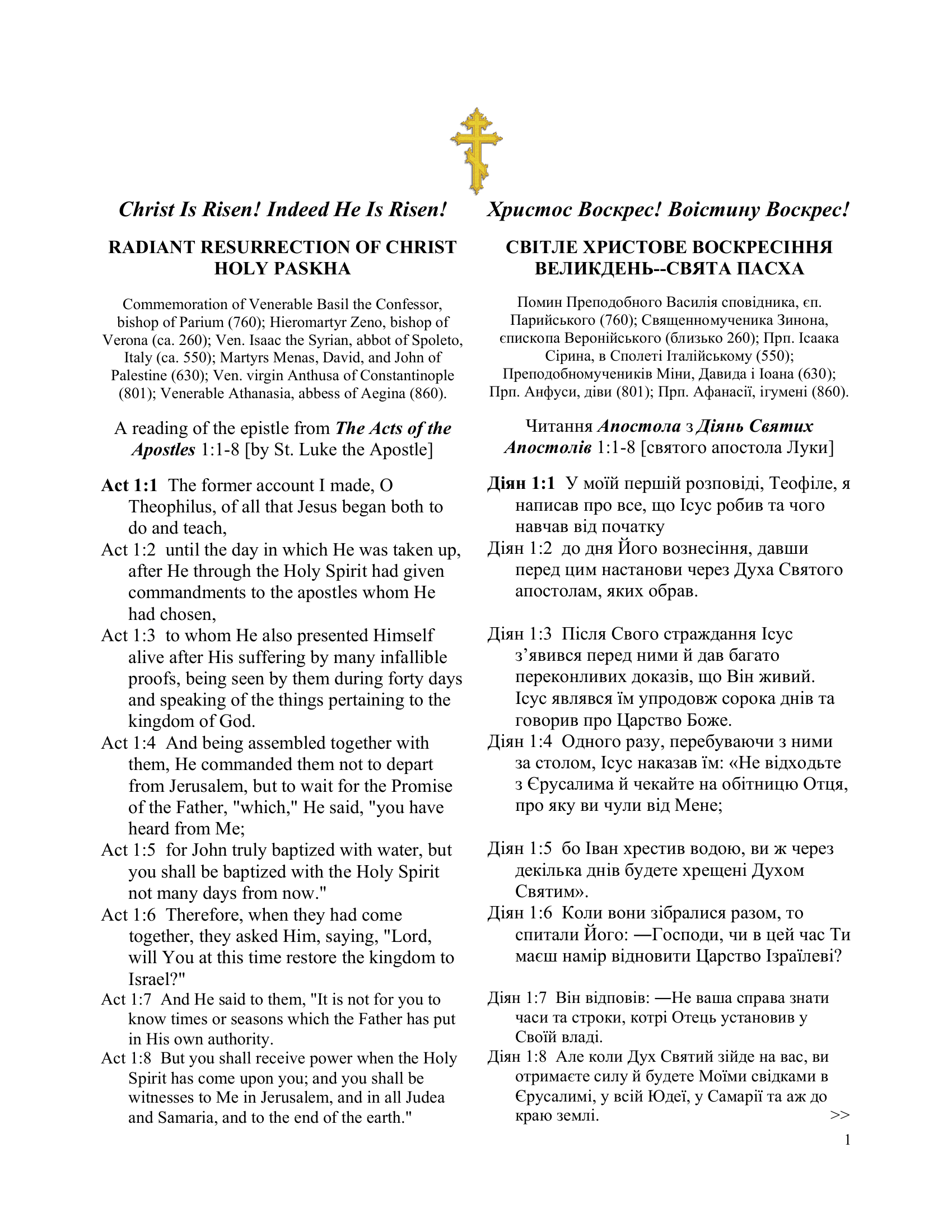 Radiant Resurrection of Christ Holy Paskha Weekly Readings Apr 8 Written By Kira Kralytsia Світле Христове Воскресіння Великдень Свята Пасха weekly readings Kira Kralytsia