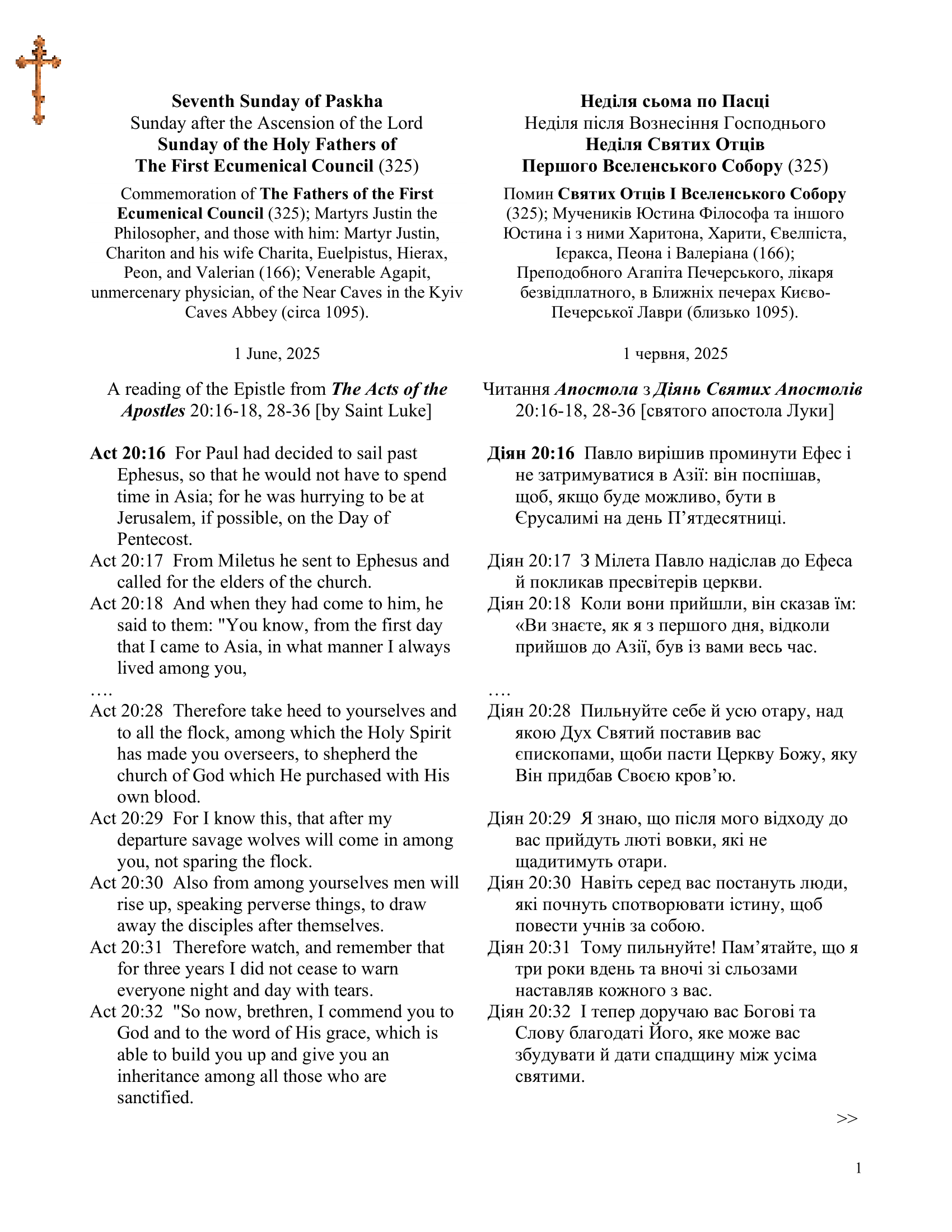 Sun. June 1, 2025 • Нед. 1 -ше червня 2025 р. Weekly Readings May 28 Written By Kira Kralytsia weekly readings Kira Kralytsia