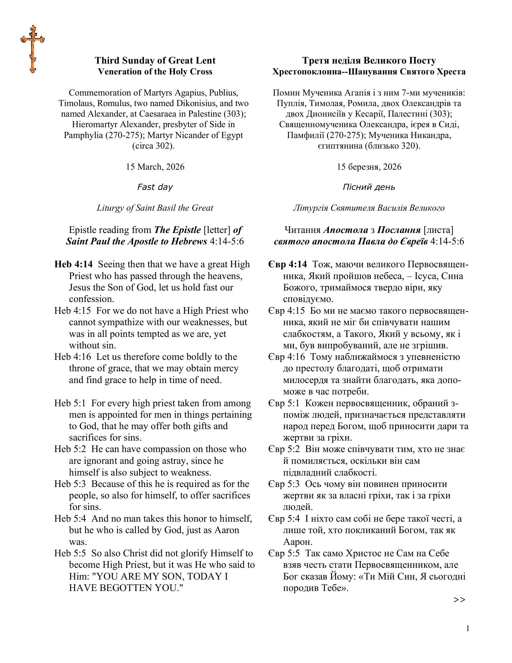 Sun. March 15, 2026 • Нед. 15 березня 2026 р. Weekly Readings Mar 11 Written By Kira Kralytsia weekly readings Kira Kralytsia